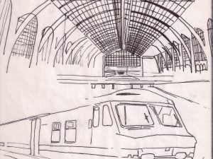 Collage of pen and ink drawings with digital illustration, based on photographs taken while on vacation.